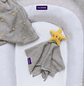 Nuestro tuto de estrella fugaz, de 30 cm x 30 cm, tiene el tamaño ideal para acurrucarse y llevarse a la cama, ayudando a implementar una rutina de sueño para su bebé.