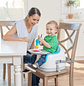 Diseñado para el juego y la dentición. Este juguete con ventosa se adhiere a cualquier superficie lisa. El cuerpo giratorio y los granos de traqueteo ayudan al bebé a desarrollar habilidades motoras y mantenerse entretenidos.