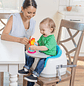 Diseñado para el juego y la dentición. Este juguete con ventosa se adhiere a cualquier superficie lisa. El cuerpo giratorio y los granos de traqueteo ayudan al bebé a desarrollar habilidades motoras y mantenerse entretenidos.